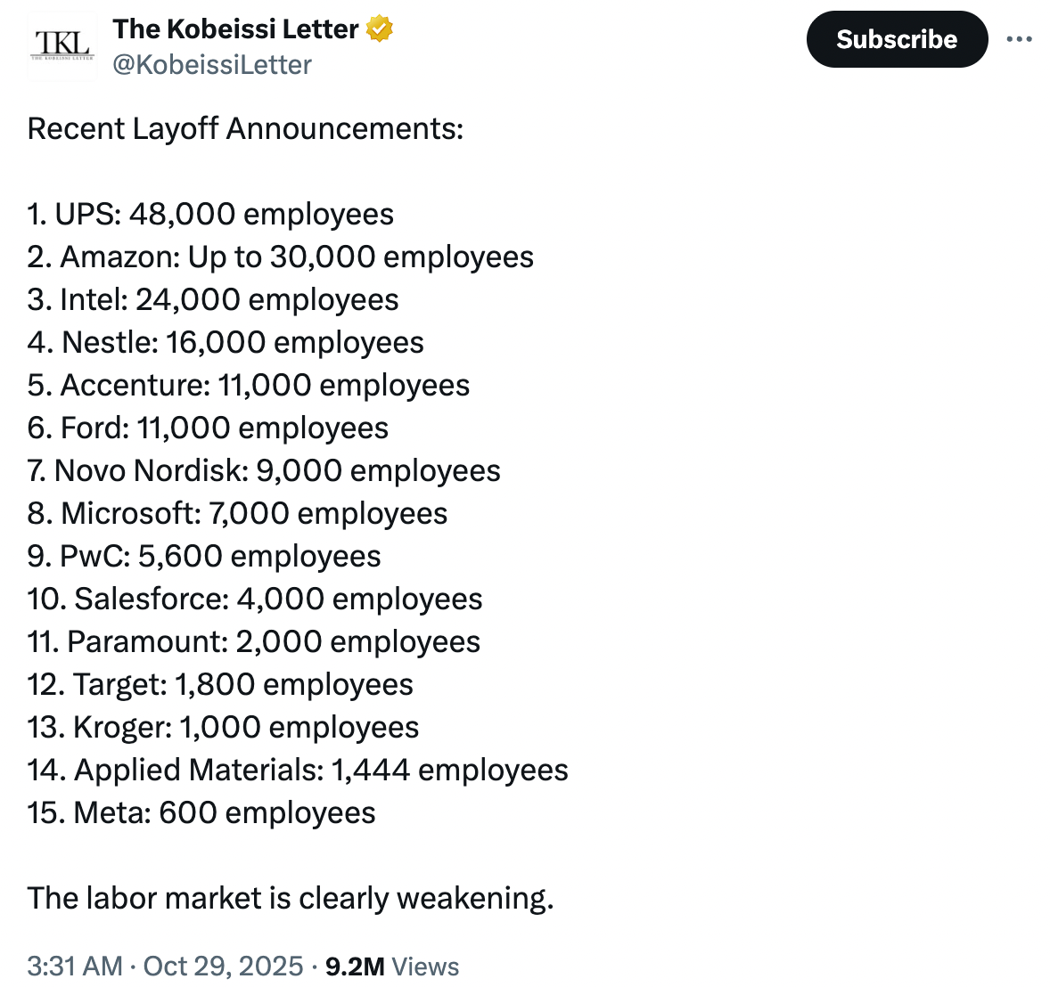 Just take a look at some of the companies who cut jobs this week - this is the tip of a very, very large iceberg heading our way due to AI:
